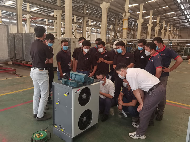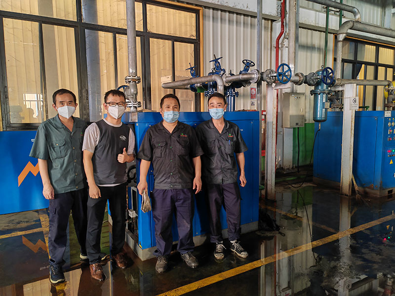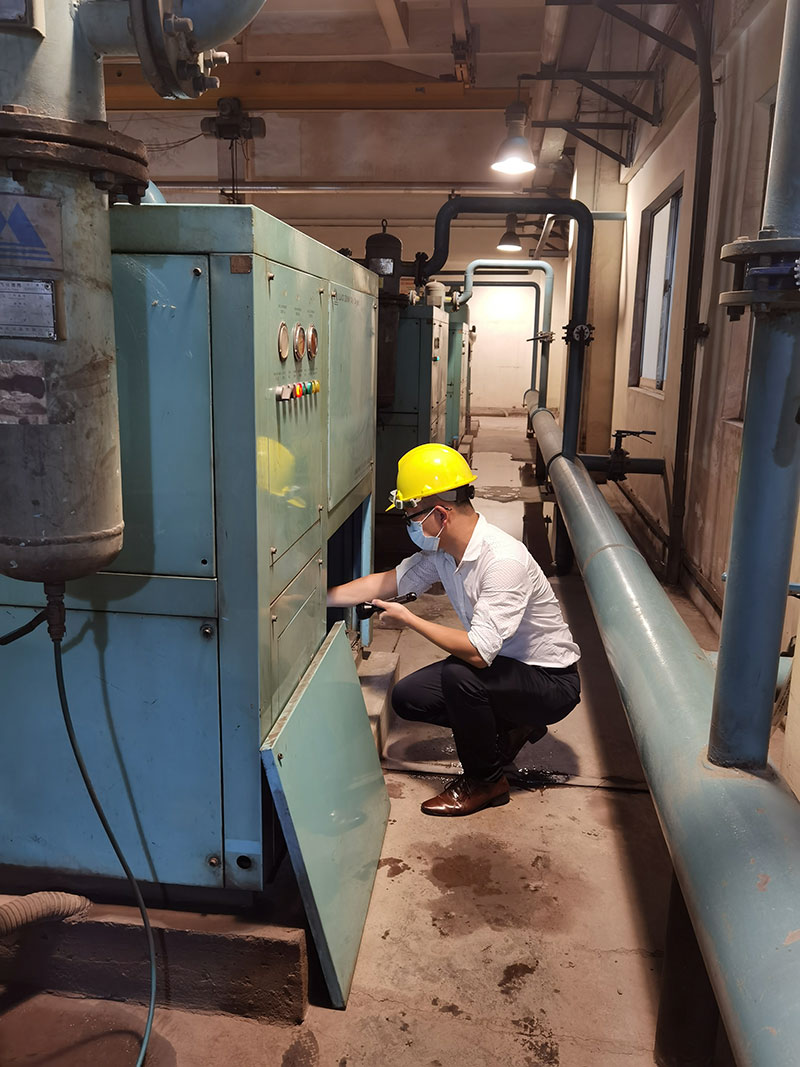 从河内到胡志明市,再从胡志明经10几个小时的周转到达热电厂项目地,现场20多台我司设备,有的已长达10年机龄,轰隆隆的在闷热陈旧的机房里运转,我们的服务工程师从显示屏露点、温度等数据再到阀门、压缩机、末端含水量、电排等一一进行检修,确保电厂能够稳定和高品质地用气。等所有设备检修完毕,服务工程师早已汗流浃背。