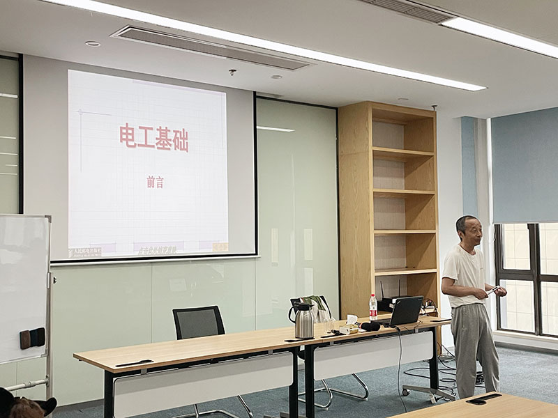 参加本次培训的员工有40余人,上午的《电工技术》课程由高级工程师郑晓晨担任讲师。郑老师详细为员工讲解了电工学、常见的电工部件、电工技术基本定律等。同时通过提问互动的形式,让员工对已有知识进行巩固加深,并认识到自身技术知识的欠缺,提高自身技能的全面性。