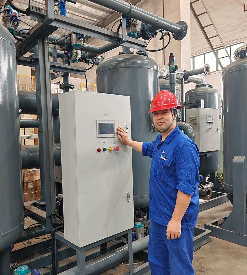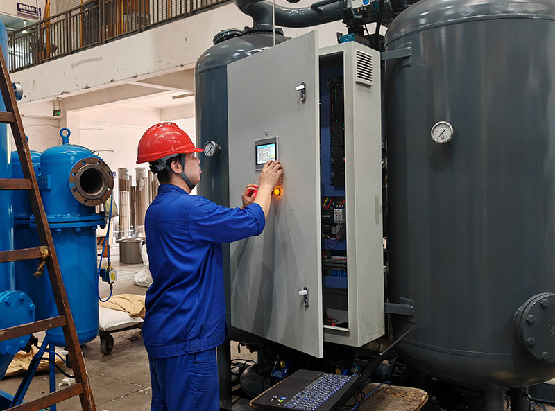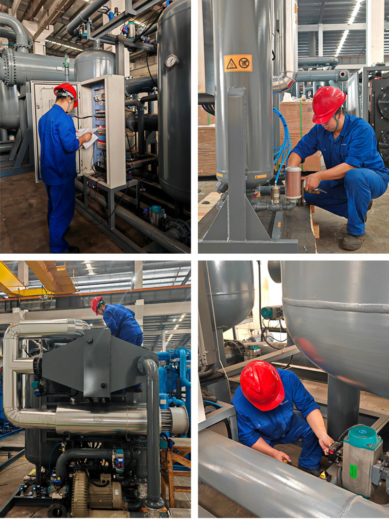 我的日常工作主要是吸干机类的设备调试,内容主要包括:安装普通吸干机阀门的快速接头、安装PU管、鼓风热和压缩热阀门的贴标等,还有通电运行工作,检查设备电路是否正常,工艺是否符合生产要求等。