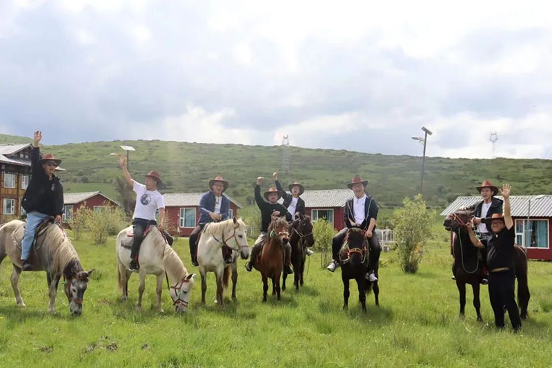 欣赏了如画的山水,再来感受一下辽阔的湿地草原风光。天空湛蓝深远,云朵洁白无瑕,我们骑着马、唱着歌,仿佛纵情享受着草原带来的五彩斑斓。